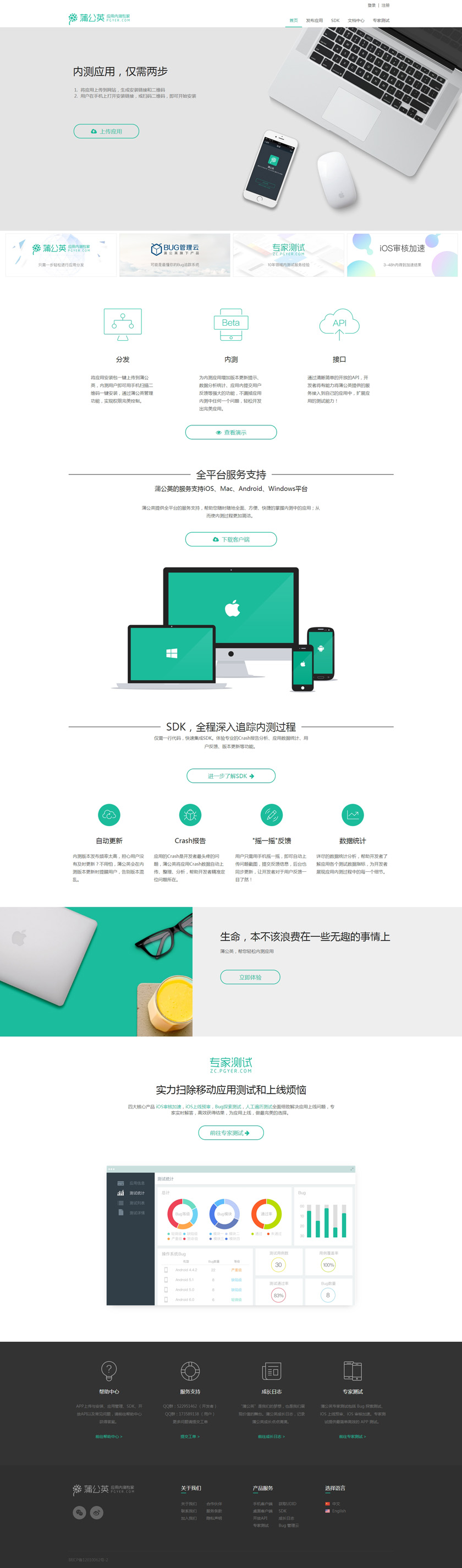 西安点测网络科技有限公司旗下的『蒲公英』品牌,是专为 iOS、Android 开发者提供的免费用应用内测、托管的平台,旨在解决开发者将应用分发给内测用户时的繁杂、低效的问题。